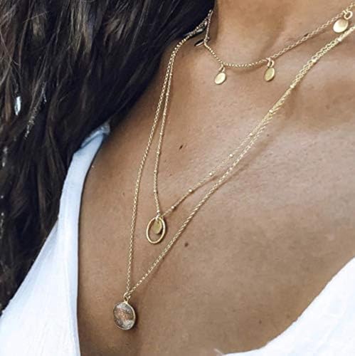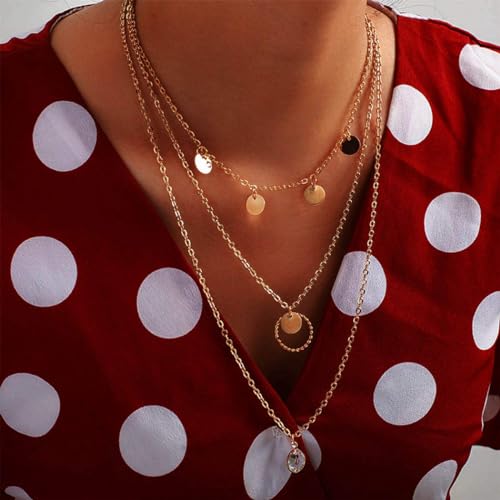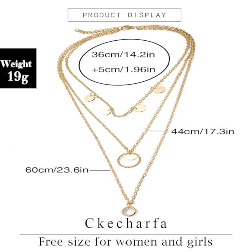 Ckecharfa - سلسلة ذهبية متعددة الطبقات قابلة للتعديل بدلاية من حجر الراين ونجوم للنساء من سكيشارفا, Free Size