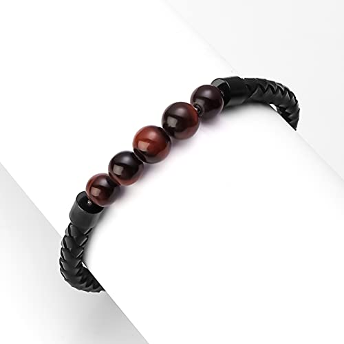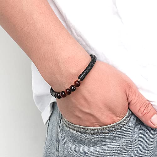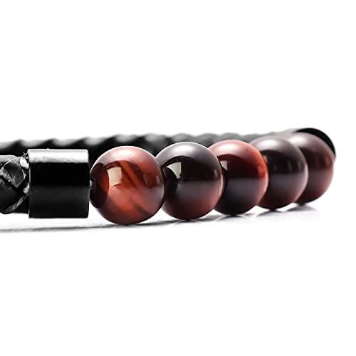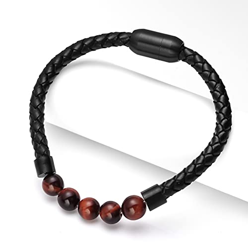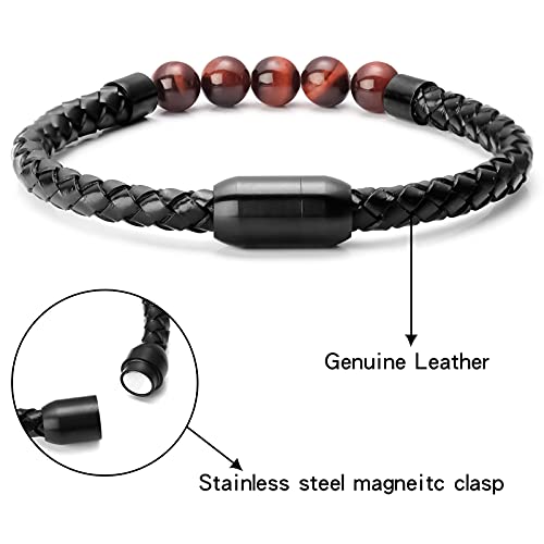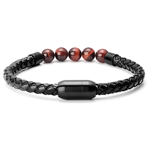 Ckysee - سوار احجار لافا علاجي للشاكرا السبعة والتوازن مصنوع من جلد طبيعي مع قفل مغناطيسي وخرز عين النمر وعقيق وهولايت للرجال سكيسي حجر