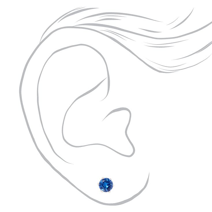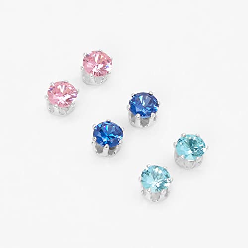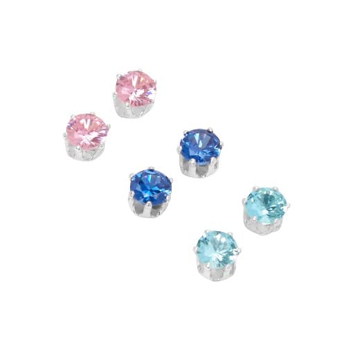 Claire's - كليرز اقراط مغناطيسية مرصعة بحجر زركونيا مكعب 5 ملم بلون ازرق وزهري - 3 قطع، معدن، للبنات