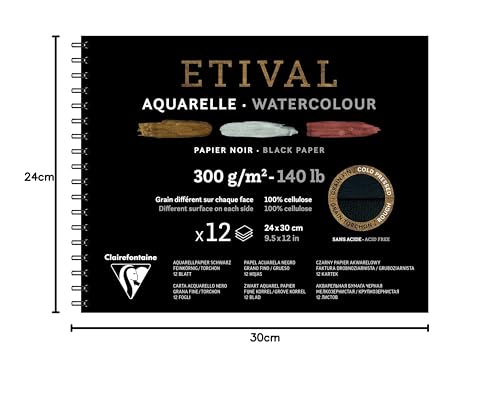 Clairefontaine - دفتر رسم بورق اسود من كليرفونتين، 12 ورقة - 24 × 30 سنتيمتر - 975326C