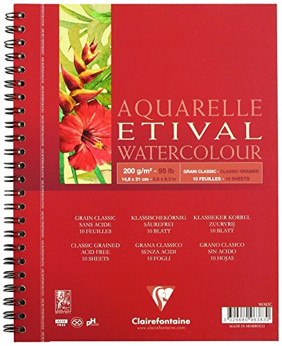 Clairefontaine - لوحة رسم ملونة مائية كلاسيكية محببة بسلك اتيفال 96383C (10 ورقات) من كاليفورتاين - A5 (21 × 14.8 سم) - ورق فني من السليلوز 200 جرام لكل متر مربع