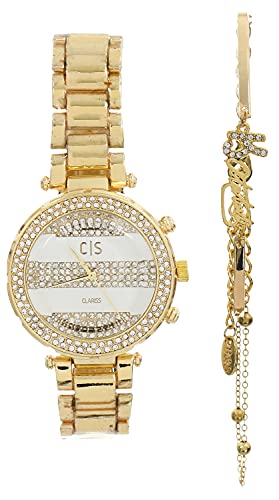 Clariss - مجموعة ساعة كلاسيك اسورة من كلاريس cs35148 للنساء، انالوج بعقارب، بمينا أبيض، بسوار ذهبي