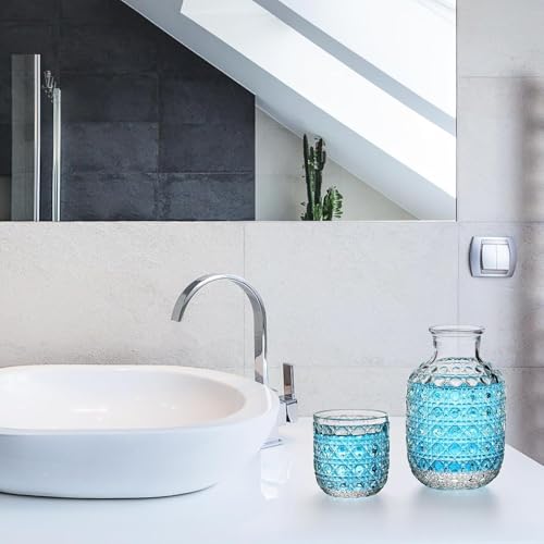 Generic - طقم ابريق ماء كلاسيكي لجانب السرير مع كوب، 2 قطع 14 اونصة من الزجاج الشفاف لغسول الفم وابريق بجانب السرير وكوب، مجموعة مشروبات منتصف الليل العملية للمياه والعصير والمطبخ وغرفة النوم