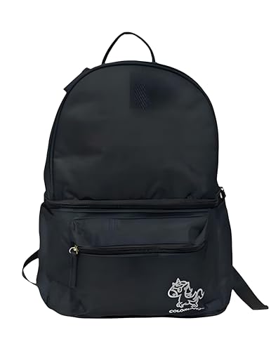 Generic - شنطة ظهر كلاسيكية سوداء مع شعار حصان كرتوني، تصميم متعدد الجيوب، شنطة يومية كاجوال