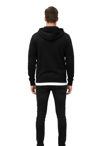 Generic - هودي كلاسيكي اسود بسوستة من مزيج القطن، ملابس كاجوال، جيوب امامية