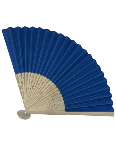Generic - مروحة كلاسيكية قابلة للطي من الورق الازرق - اطار خيزران مع تصميم زهور - مروحة يد انيقة لحفلات الزفاف والحفلات والصيف