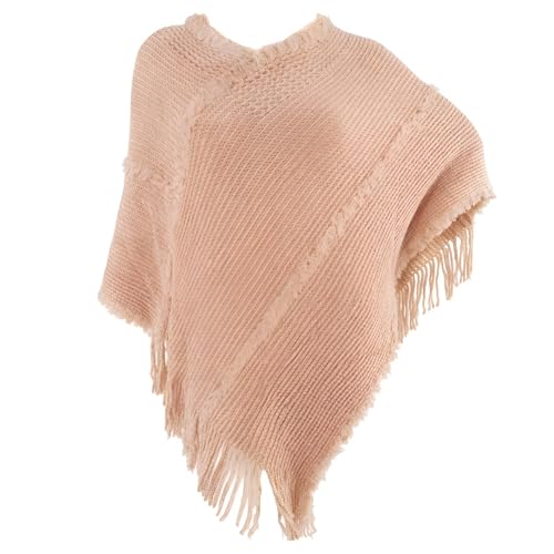 Generic - بونشو كلاسيكي - شال بونشو مفتوح من الامام من الصوف الفاخر، ينسدل برشاقة لحفلات الزفاف او اعياد الميلاد او التجمعات الشتوية، مما يوفر الدفء الانيق والذوق الراقي. (مقاس واحد، موديل 1، بيج)
