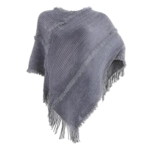Generic - بونشو كلاسيكي - شال بونشو مفتوح من الامام من الصوف الفاخر، ينسدل برشاقة لحفلات الزفاف او اعياد الميلاد او التجمعات الشتوية، مما يوفر الدفء الانيق والذوق الراقي. (مقاس واحد، موديل 1، رمادي)