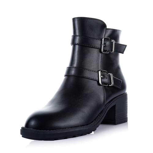 Generic - Classic Buckled Strap Ankle Boot with Block Heel and Lug Sole