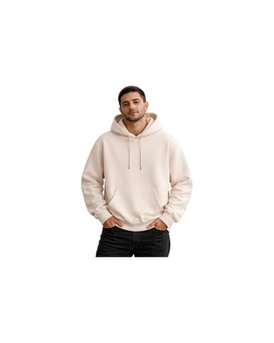 Generic - هودي قطني كلاسيكي، لون كريمي، بغطاء رأس وجيب كنغر أمامي، مقاس L، تصميم عصري للبالغين، قماش ناعم مريح، نمط كاجوال يومي (XL)