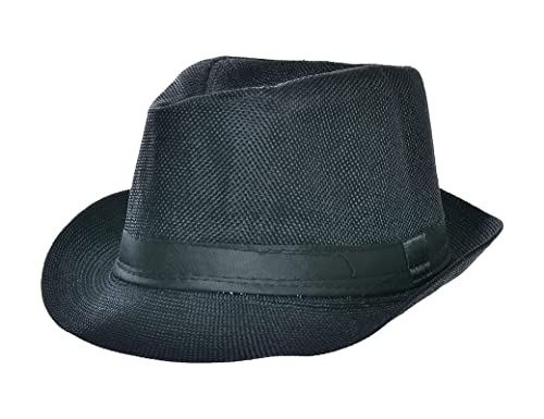 Generic - طاقية فيدورا بقمة بشكل مسطح بنمط كلاسيكي للجنسين، باللون الاسود، مقاس واحد