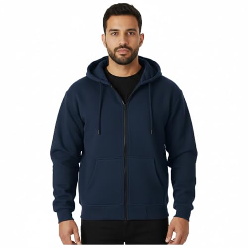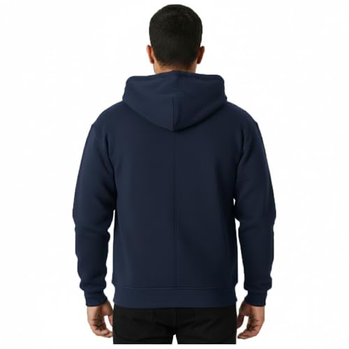 Generic - سويت شيرت كلاسيكي بغطاء للرأس وسوستة كاملة، أزرق كحلي، مزيج من القطن، جيوب أمامية، ملابس رياضية كاجوال