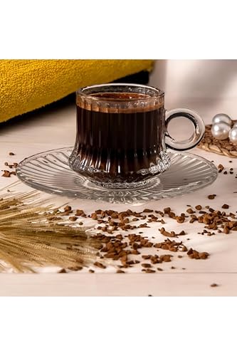 Generic - طقم زجاج كلاسيكي - مجموعة اكواب شاي وقهوة شفافة مكونة من 12 قطعة مع اطباق بتصميم شفاف انيق للضيافة او تقديم الطعام اليومي، سعة 220 مل لكل منها