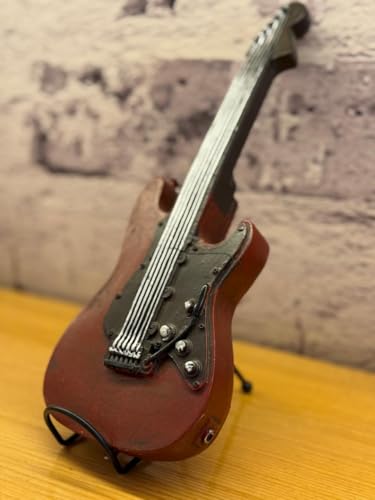- تصميم مميز: نموذج مجسم لجيتار بتشطيب نبيتي وأسود أنيق مع تفاصيل دقيقة
