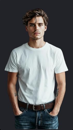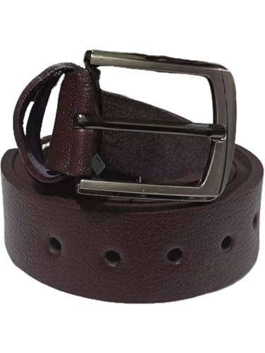Perfect Fashion - حزام جلد كلاسيكي مع ابزيم معدني مزدوج، لون بني، تصميم مخرم
