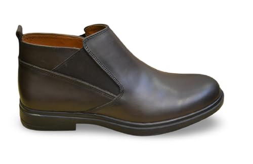 Generic - بوت تشيلسي بطول الكاحل من الجلد الكلاسيكي، اسود، الواح جانبية مرنة، سهل الارتداء 05-16