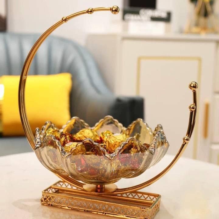 Generic - طبق فاكهة فاخر بتصميم كلاسيكي، إطار ذهبي مع وعاء زجاجي، قاعدة مزخرفة