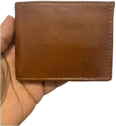 Generic - محفظة كلاسيكية ثنائية الطي للرجال من الجلد الطبيعي. (بيج)