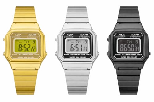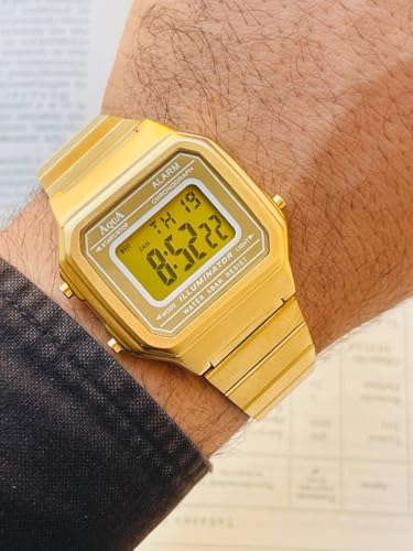 Generic - ساعة رقمية كلاسيك رجالي نسائي معدن ضد الماء بإضاءة ليلية ومنبه – تصميم أنيق للموضة والاستخدام اليومي – ساعة كاجوال عملية تناسب كل المناسبات لون ذهبي