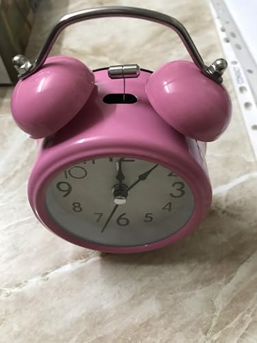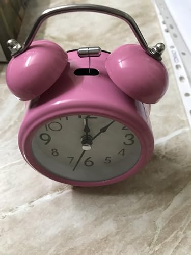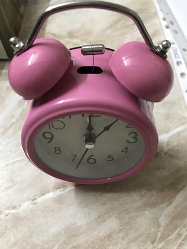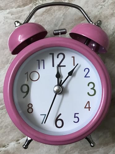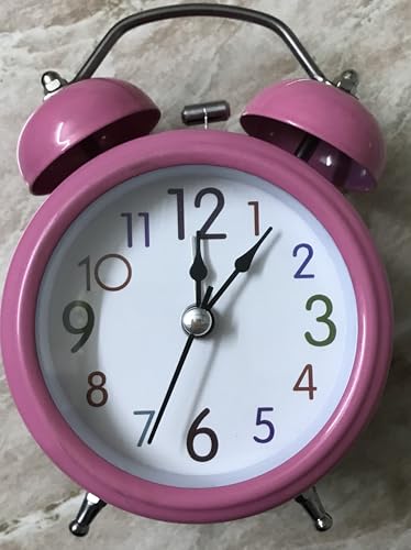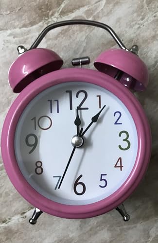 Generic - ساعة منبه كلاسيكية معدنية، بينك اللون، مزدوجة الجرس، بأرقام ملونة