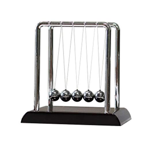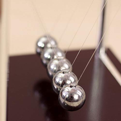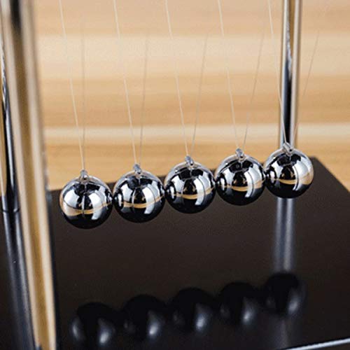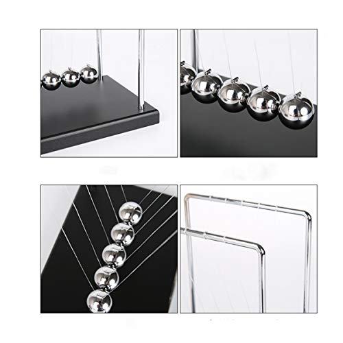 STUDYY - كرات توازن مهد نيوتن الكلاسيكية، احجية علم النفس العلمي، ادوات ترفيه لسطح المكتب مع قاعدة خشبية سوداء، مقاس M