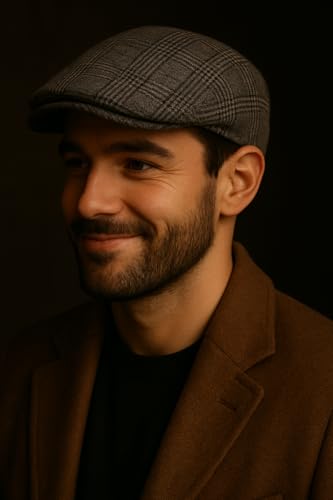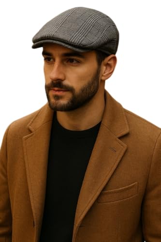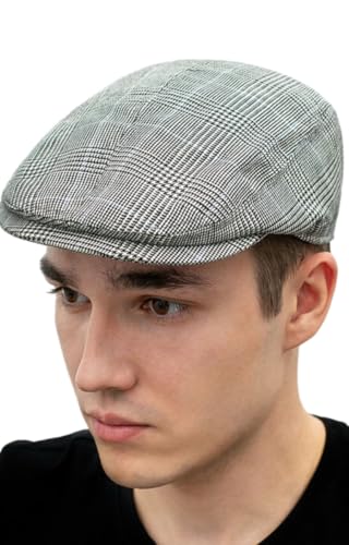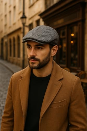 Generic - قبعة مسطحة كلاسيكية منقوشة، نمط مربعات رمادية جلين، قبعة قيادة بنمط عتيق من ايفي نيوزبوي للرجال