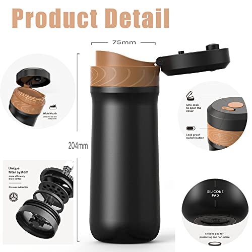 - تخلص من الصحافة الفرنسية التقليدية: مع مج تحضير القهوة الفرنسية بالضغط المحمول بسعة 355 مل، لست بحاجة لتنظيف مج تحضير القهوة الفرنسية بالضغط أو استخدام مج إضافي، حيث يجمع بين التحضير والشرب في قطعة واحدة، سهل الاستخدام والتنظيف. مناسب جدًا لعشاق القهوة أثناء السفر أو التخييم، إذ يمكنك طحن القهوة مسبقًا ووضعها في المج ثم إضافة الماء الساخن للحصول على قهوة عالية الجودة.