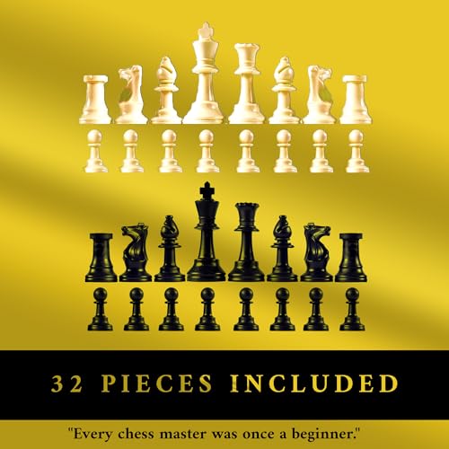 - * المحتويات: 32 قطعة شطرنج (16 أبيض، و16 أسود).