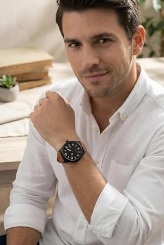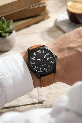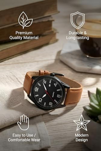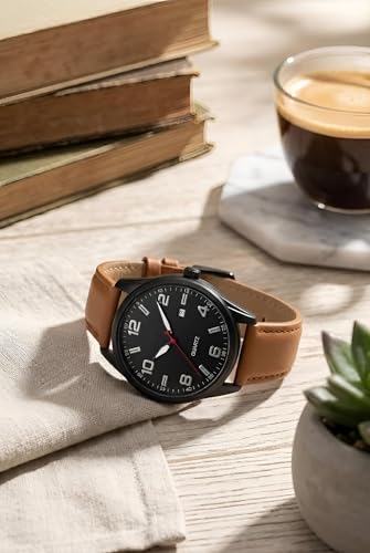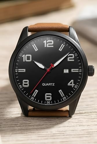 Generic - ساعة كوارتز كلاسيكية بهيكل مصنوع من الفولاذ المقاوم للصدأ اللامع بلمسة نهائية مصقولة مع نافذة للتاريخ وسوار جلد بتصميم حديث وأنيق للعمل والمناسبات الرسمية، متعددة الألوان