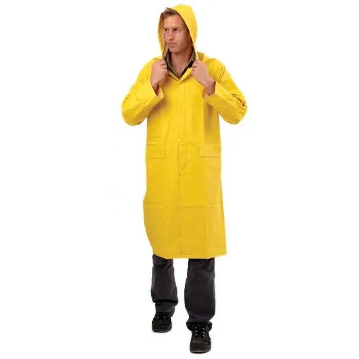 Generic - جاكيت سلامة كلاسيكي طويل مقاوم للماء من بلاستيك PVC مع غطاء للرأس للجنسين (اصفر)