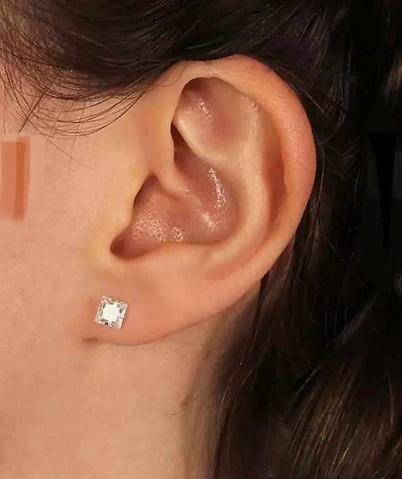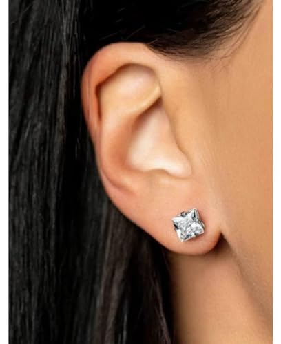 Generic - حلقان كلاسيك مربعة الشكل مرصعة بالزركونيا بلون فضي للنساء مجوهرات