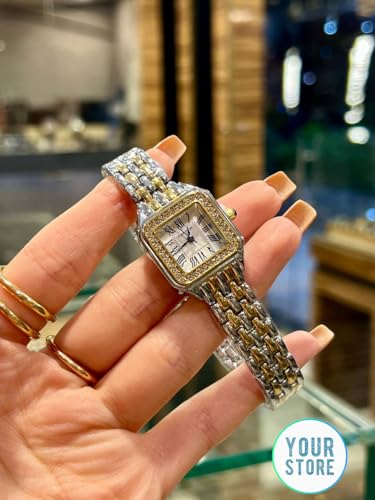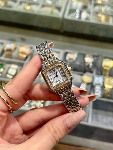 Generic - ساعات كلاسيكية مربعة للنساء مع ارقام رومانية ساعة رسمية كاجوال للسيدات (فضي وذهبي)