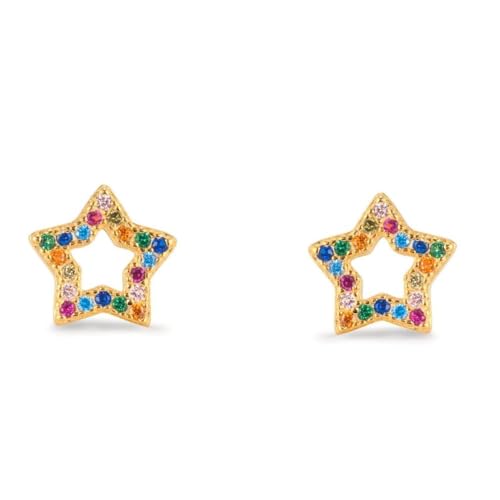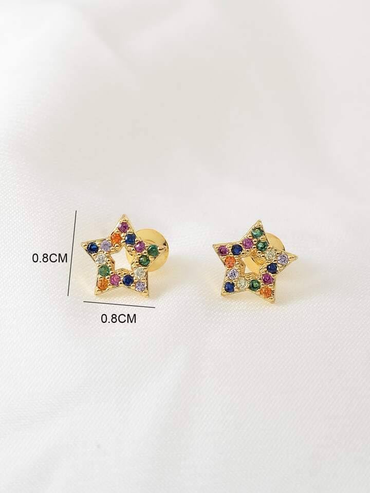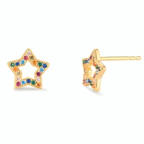 Generic - اقراط كلاسيكية بتصميم نجمة مجوفة من النحاس والزركونيا المكعب والكريستال للنساء والفتيات لحفلات الزفاف وهدية عيد الميلاد، ذهبي