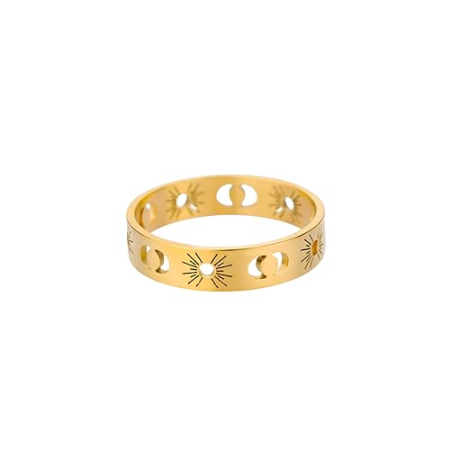Generic - خاتم كلاسيكي على شكل شمس وقمر - خاتم زفاف أنيق من الفولاذ المقاوم للصدأ بتصميم عتيق، مقاوم للماء، نمط سماوي فريد للنساء العصريات اللواتي يبحثن عن مجوهرات مميزة.