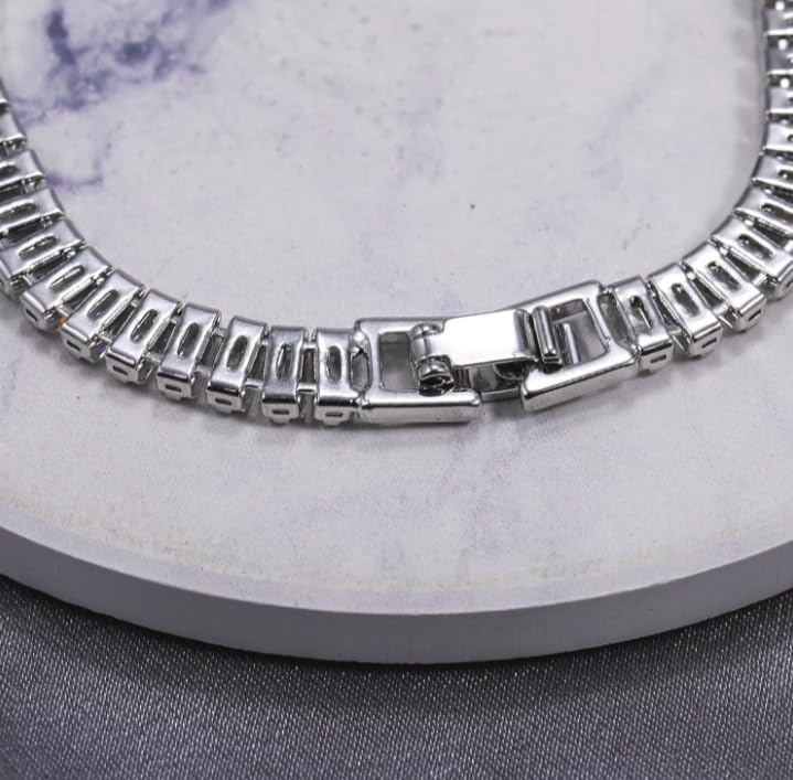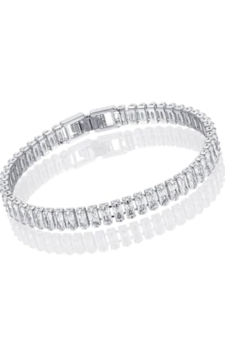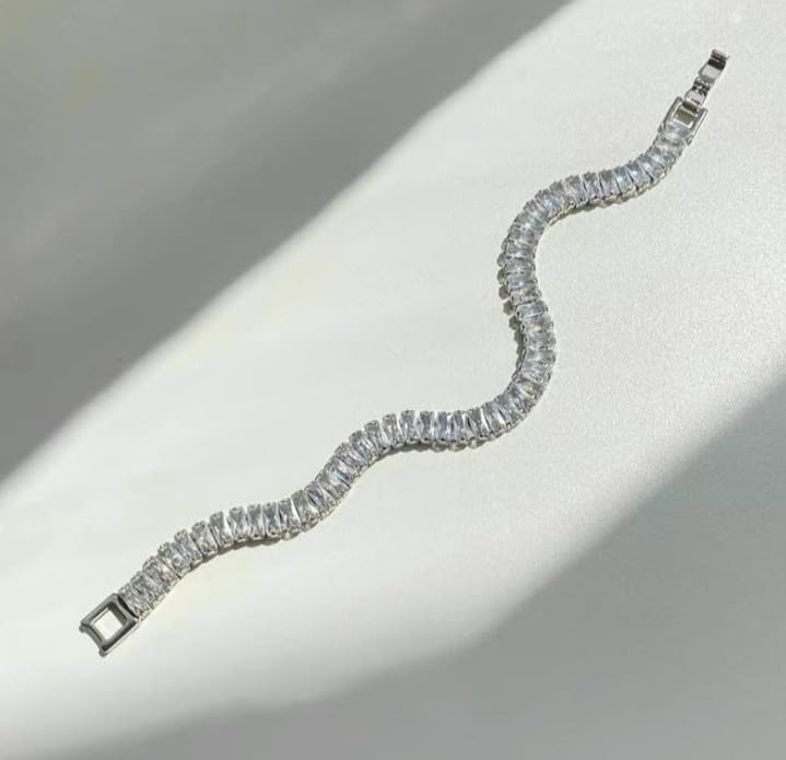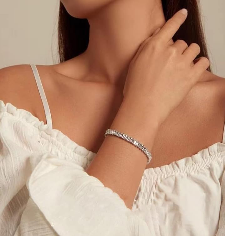 Generic - سوار تنس كلاسيكي مطلي بالذهب عيار 18 قيراط مرصع بحجر الزركونيا المكعب 7 انش من الفضة مصنوع يدويا كريستال حجر الراين والماس اساور بانجل ذهبية عصرية للنساء ذهبي