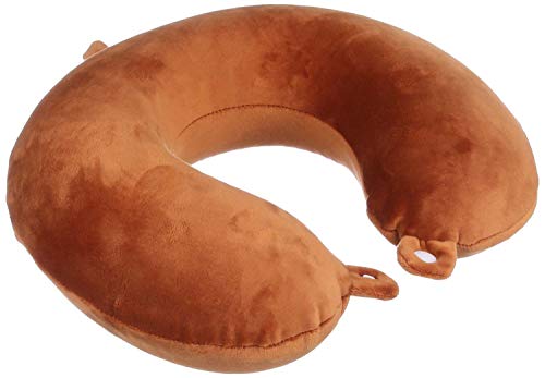 generic - وسادة سفر كلاسيكية، مصنوعة من الميموري فوم النقي بنسبة 100%، وسادة رقبة على شكل حرف U، غطاء مريح وجيد التهوية - بني 48743، إسباندكس