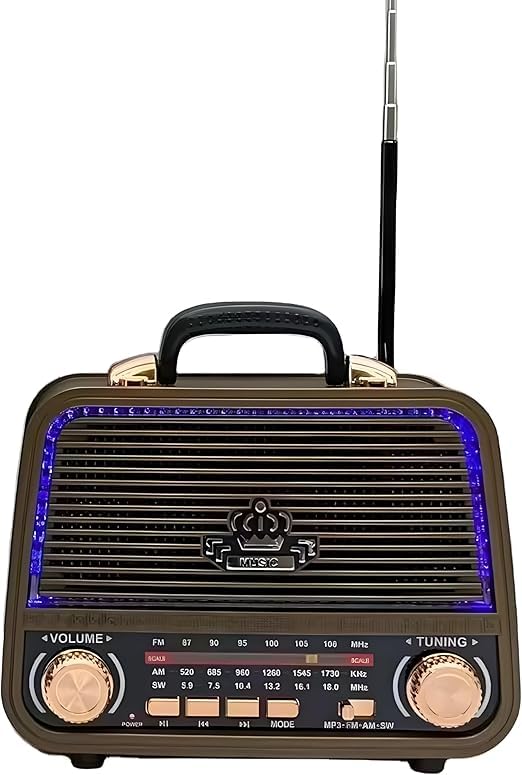 Generic - راديو محمول لاسلكي كلاسيكي – موجات FM/AM/SW، بلوتوث، USB، مدخل AUX، فتحة بطاقة TF، بطارية طويلة التشغيل، صوت احترافي