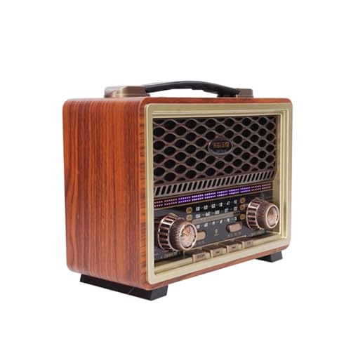 Generic - راديو لاسلكي خشبي كلاسيكي، 3 نطاقات (AM-FM-SW)، يدعم البلوتوث وUSB وبطاقة TF ومدخل AUX مع مدخل شحن تيار مستمر وبطارية قابلة لاعادة الشحن | M-2015BT (فضي)