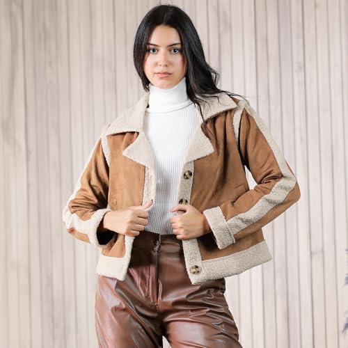 FRIDAYIN - جواكيت كلاسيكية كاجوال لون سادة ونقشة ربط متباينة وأزرار وأكمام عادية