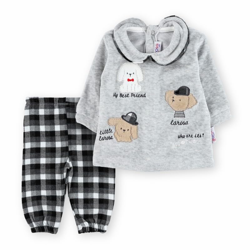 Generic - بيجامة شتوية انيقة - صوف ناعم، مقاس 6-12 شهر، رمادي| ملابس نوم مريحة للاطفال