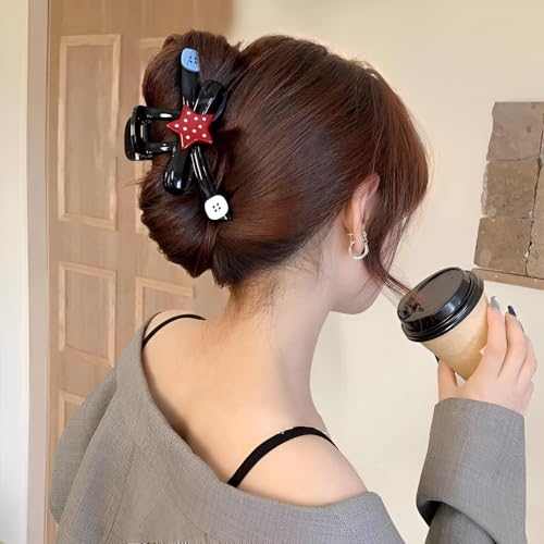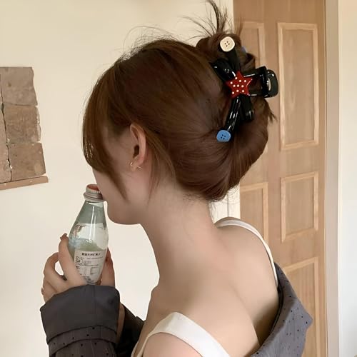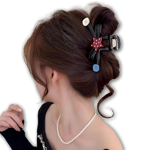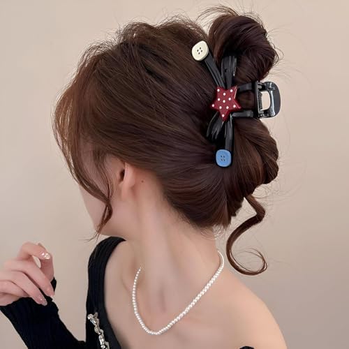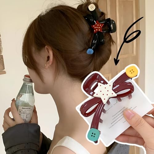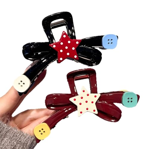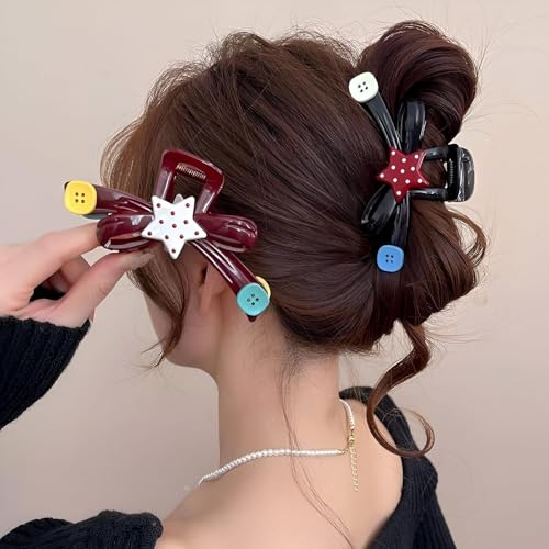 Generic - مشبك شعر على شكل مخلب - اكسسوار شعر عصري بفك كبير بلون بورغندي واسود يتميز بنمط نجمة وتفاصيل زر (اسود)