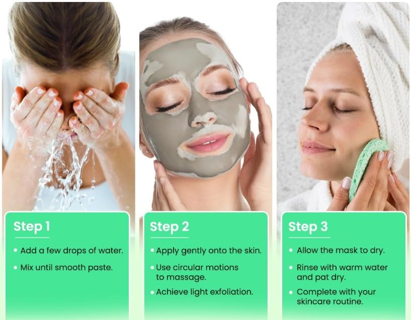 - شعور بشد البشرة مع لمسة نهائية ناعمة: بينما يجف الطين، يخلق إحساسًا لطيفًا بالشد يترك البشرة مشدودة ومنتعشة بعمق. بعد الشطف، تبدو بشرتك أكثر سلاسة، ونعومة، وجاهزة للتوهج.