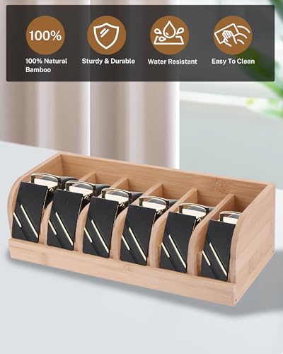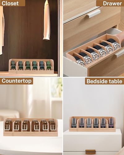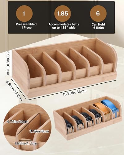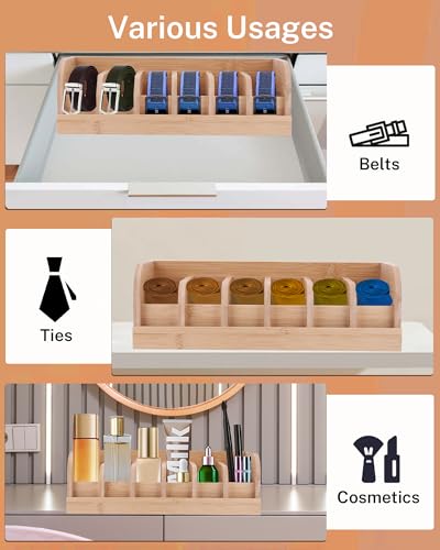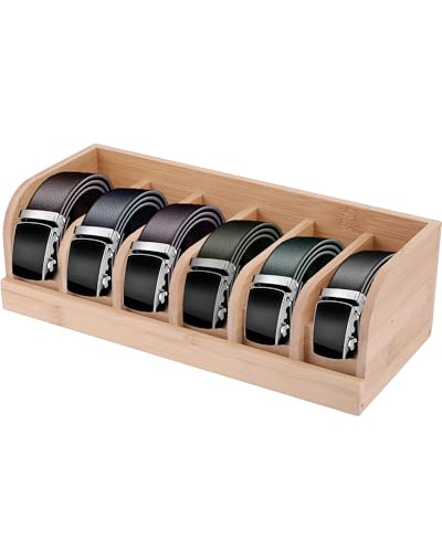 CLBDRESS - منظم احزمة للخزانة من سي ال بي دي ريس، صندوق تخزين احزمة من الخيزران مع 6 اقسام، منظم احزمة للادراج، منظم احزمة وربطات العنق للخزانة، للرجال والنساء، لون اصفر خشبي