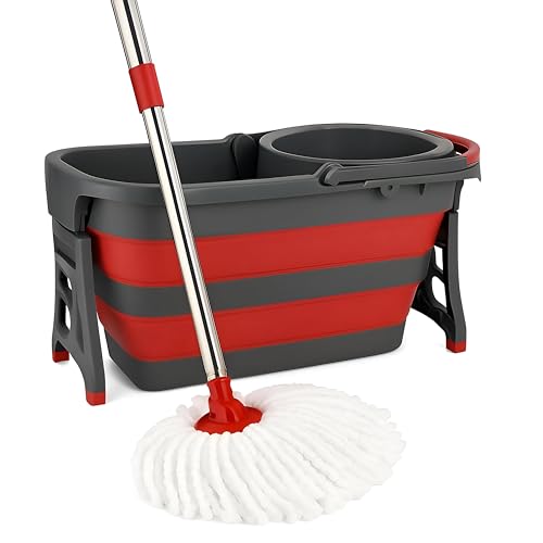 Generic - دلو تنظيف - دلو سيليكون مرن متين مع معالجة ناعمة، مثالي للأنشطة الخارجية، تنظيف فعال (احمر)