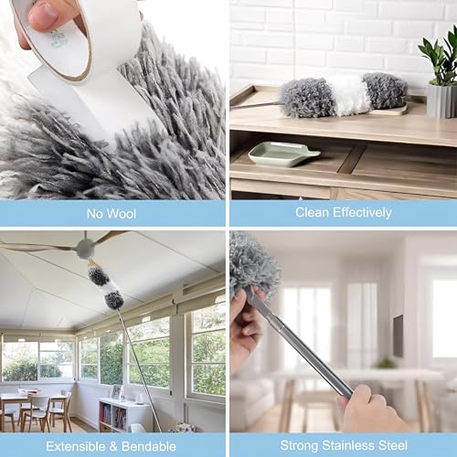 - تتميز منفضة الغبار بعمود قابل للسحب متعدد الاستخدامات وقابل للثني حيث يمكن تعديله بين 76.2 سم إلى 2.54 متر، مما يجعل المنفضة مناسبة للوصول إلى المناطق المرتفعة مثل الأسقف والمراوح دون الحاجة إلى السلالم أو الكراسي غير الآمنة. تتيح هذه الميزة للمستخدمين من جميع الأحجام، بما في ذلك البالغين والأطفال، تنظيف تلك الأماكن التي يصعب الوصول إليها بأمان وفعالية في منازلهم، مما يعزز تجربة تنظيف أكثر أمانًا.