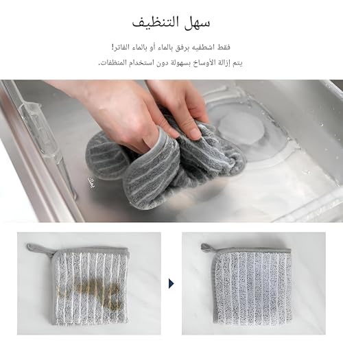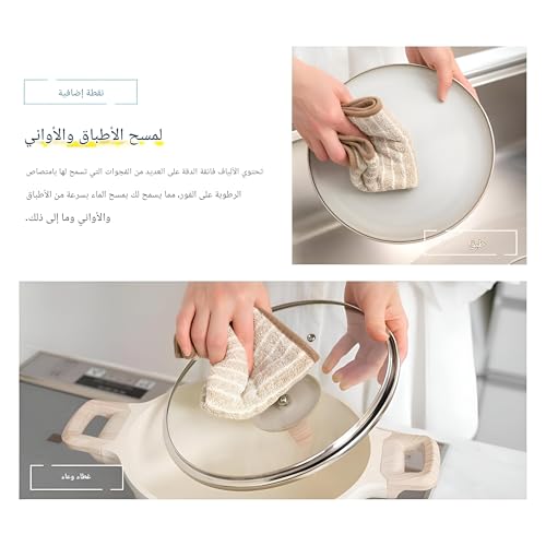 - تم تصميم المناشف لتجفيف سريع لأنها تحتفظ بقليل من الرطوبة بعد عصرها. تمنع هذه الميزة نمو البكتيريا، وتحافظ عليها صحية للاستخدام المتكرر، وتساعد على الحفاظ على قطعة قماش منعشة وخالية من الروائح حتى بعد مهام تنظيف المطبخ الشاقة.