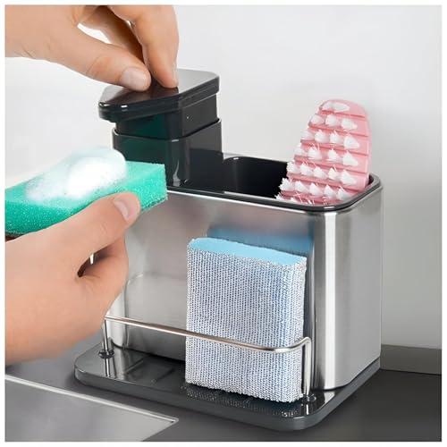 Generic - مساعد تنظيف - علبة مطبخ من الستانلس ستيل 304 3 في 1 للاسفنجة والفرشاة وموزع الصابون مع قاعدة تصريف المياه، هيكل مقاوم للصدأ يضمن المتانة ومساحة حوض أنيقة