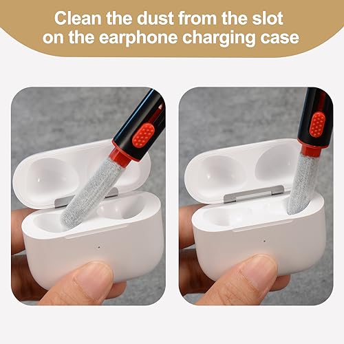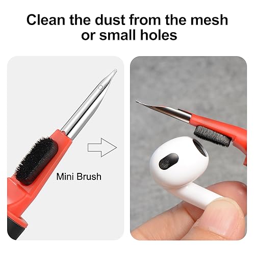 - 【مجموعة تنظيف متعددة الوظائف】مجموعة التنظيف متعددة الوظائف مع فرشاة ناعمة صغيرة وطرف قلم معدني وإسفنجة متدفقة تسمح لك بتنظيف سماعات الأذن البلوتوث وعلبة شحن سماعة الرأس بفعالية.