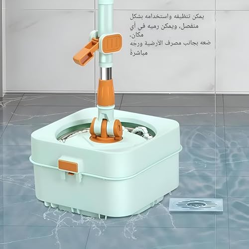 Generic - أداة تنظيف مساحة دوارة مبتكرة بمحرك مزدوج للاستخدام الجاف والرطب، تعمل بتقنية التنظيف دون لمس للمنزل والحمام والمطبخ، شرشوبة مع رأس وجردل متينين بتصميم عصري
