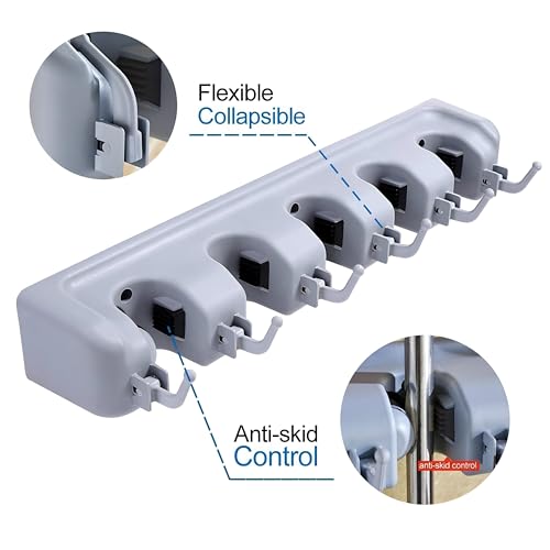 - تم تصميم منظم المكنسة والممسحة ذو الخمس فتحات للحفاظ على جميع أدوات التنظيف مرتبة بدقة وسهولة الوصول إليها. قل وداعًا للخزانات الفوضوية والمكانس المتشابكة! يوفر حل التخزين المبتكر هذا مكانًا مخصصًا لكل أداة، مما يضمن بقائها في مكانها بأمان دون خطر الانقلاب أو التلف.